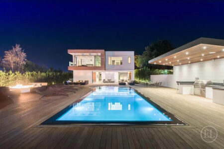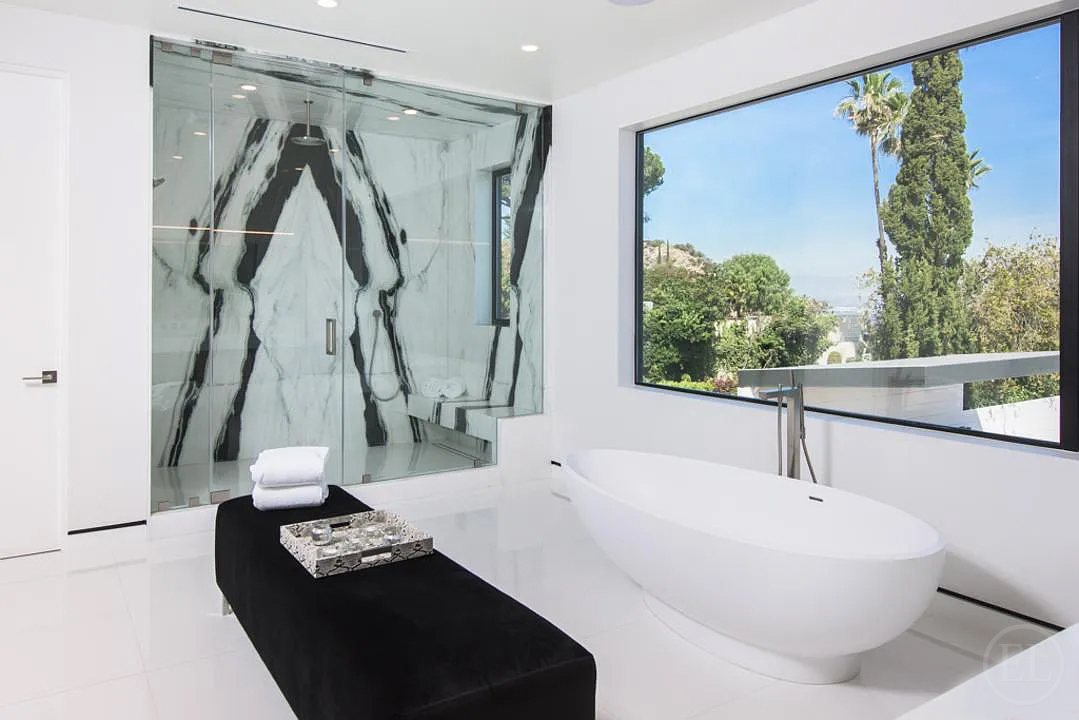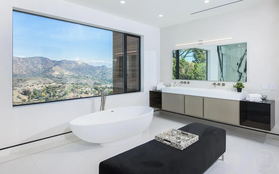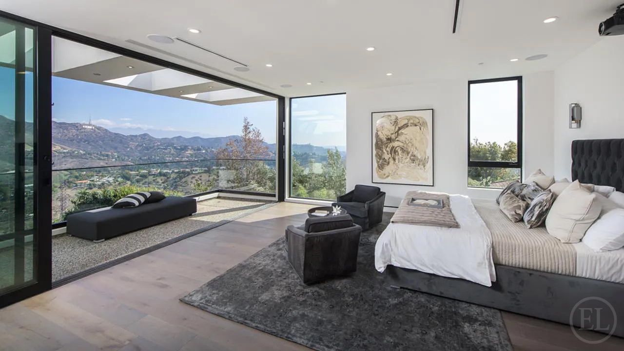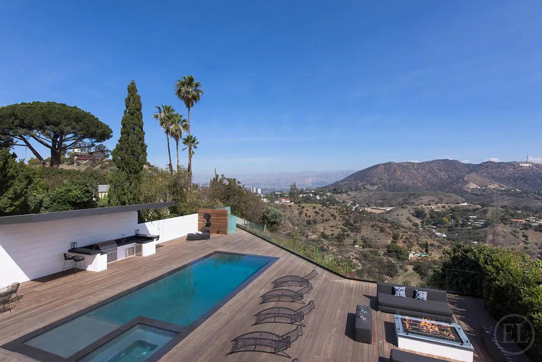 Experience unparalleled luxury in this architectural masterpiece located on one of the most prestigious streets in the Hollywood Hills. Recently renovated and set behind a secure, double-gated motor court, this 5,753 sq. ft. estate offers a seamless blend of sophisticated design and high-tech innovation
